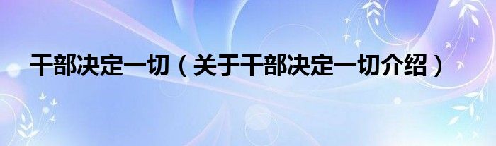 大家好,笑笑來為大家解答以上的問題。干部決定一切,關于干部決定一切介紹這個很多人還不知道,現在讓我們一起來看看吧!