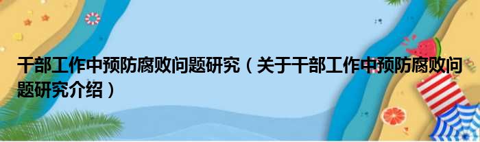 干部工作中預防腐敗問題研究(關于干部工作中預防腐敗問題研究介紹)