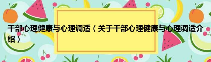 干部心理健康與心理調適(關于干部心理健康與心理調適介紹)