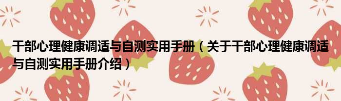 導讀 大家好,笑笑來為大家解答以上的問題。干部心理健康調適與自測實用手冊,關于干部心理健康調適與自測實用手冊介紹這個很多人還不知道,現在讓