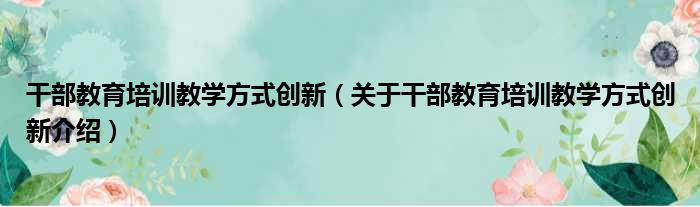 干部教育培訓教學方式創新(關于干部教育培訓教學方式創新介紹)