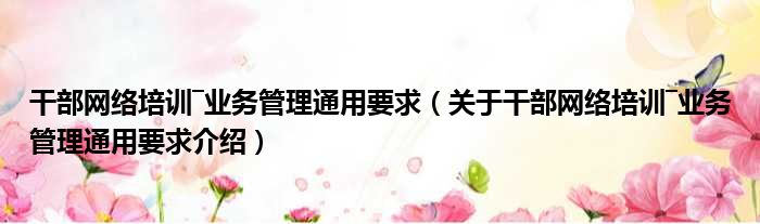 干部網絡培訓―業務管理通用要求(關于干部網絡培訓―業務管理通用要求介紹)