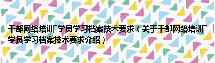 干部網絡培訓―學員學習檔案技術要求(關于干部網絡培訓―學員學習檔案技術要求介紹)