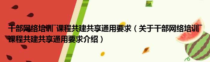 干部網絡培訓―課程共建共享通用要求(關于干部網絡培訓―課程共建共享通用要求介紹)