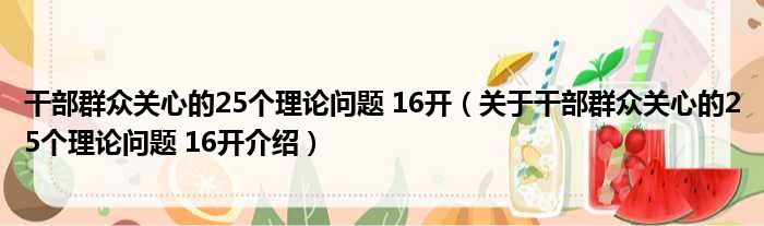 大家好,笑笑來為大家解答以上的問題。干部群眾關心的25個理論問題 16開,關于干部群眾關心的25個理論問題 16開介紹這個很多人還不知道,現在讓我們一起來看看吧!