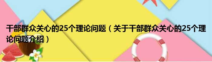 干部群眾關心的25個理論問題(關于干部群眾關心的25個理論問題介紹)