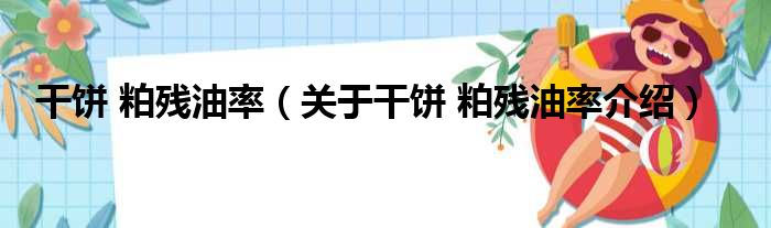 干餅 粕殘油率(關于干餅 粕殘油率介紹)