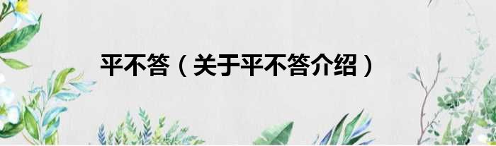 大家好,笑笑來為大家解答以上的問題。平不答,關于平不答介紹這個很多人還不知道,現在讓我們一起來看看吧!