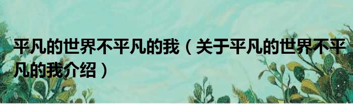 平凡的世界不平凡的我(關于平凡的世界不平凡的我介紹)
