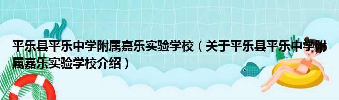 平樂縣平樂中學附屬嘉樂實驗學校(關于平樂縣平樂中學附屬嘉樂實驗學校介紹)