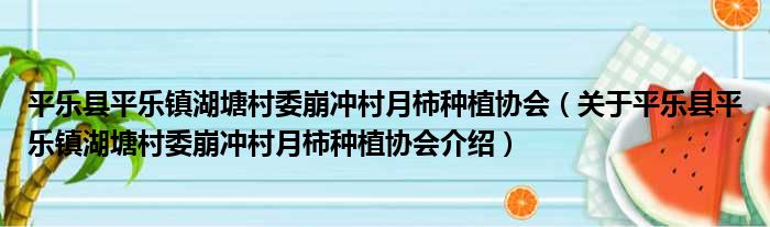 平樂縣平樂鎮湖塘村委崩沖村月柿種植協會(關于平樂縣平樂鎮湖塘村委崩沖村月柿種植協會介紹)