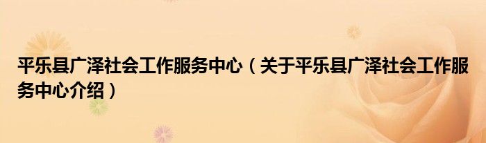 平樂縣廣澤社會工作服務中心(關于平樂縣廣澤社會工作服務中心介紹)