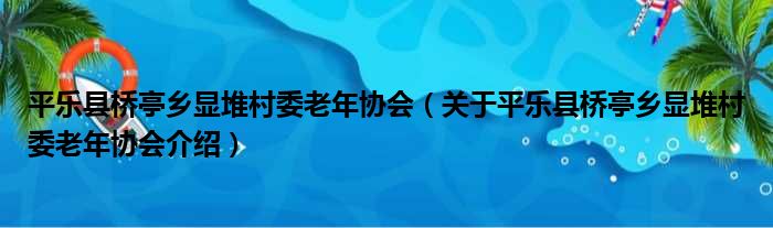 平樂縣橋亭鄉顯堆村委老年協會(關于平樂縣橋亭鄉顯堆村委老年協會介紹)