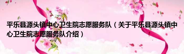 平樂縣源頭鎮中心衛生院志愿服務隊(關于平樂縣源頭鎮中心衛生院志愿服務隊介紹)