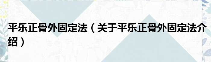 平樂正骨外固定法(關于平樂正骨外固定法介紹)