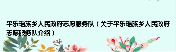 平樂瑤族鄉人民政府志愿服務隊(關于平樂瑤族鄉人民政府志愿服務隊介紹)