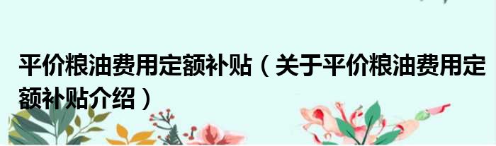 平價糧油費用定額補貼(關于平價糧油費用定額補貼介紹)