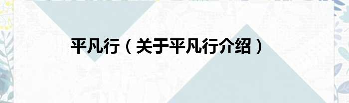 大家好,笑笑來為大家解答以上的問題。平凡行,關于平凡行介紹這個很多人還不知道,現在讓我們一起來看看吧!