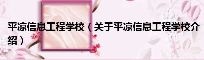 平涼信息工程學校(關于平涼信息工程學校介紹)