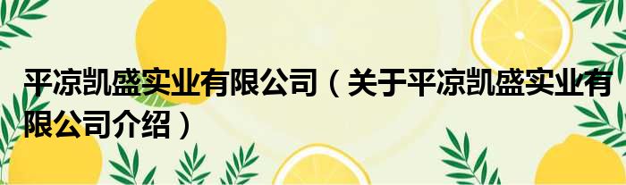 平涼凱盛實業有限公司(關于平涼凱盛實業有限公司介紹)