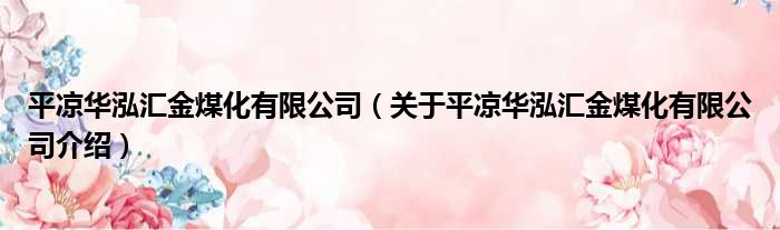 平涼華泓匯金煤化有限公司(關于平涼華泓匯金煤化有限公司介紹)