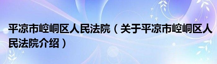 平涼市崆峒區人民法院(關于平涼市崆峒區人民法院介紹)