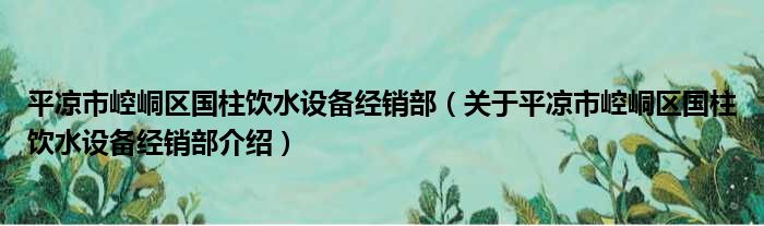 平涼市崆峒區國柱飲水設備經銷部(關于平涼市崆峒區國柱飲水設備經銷部介紹)