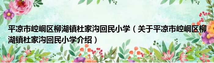 平涼市崆峒區柳湖鎮杜家溝回民小學(關于平涼市崆峒區柳湖鎮杜家溝回民小學介紹)
