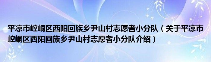 平涼市崆峒區西陽回族鄉尹山村志愿者小分隊(關于平涼市崆峒區西陽回族鄉尹山村志愿者小分隊介紹)