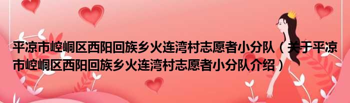 平涼市崆峒區西陽回族鄉火連灣村志愿者小分隊(關于平涼市崆峒區西陽回族鄉火連灣村志愿者小分隊介紹)