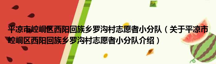 平涼市崆峒區西陽回族鄉羅溝村志愿者小分隊(關于平涼市崆峒區西陽回族鄉羅溝村志愿者小分隊介紹)