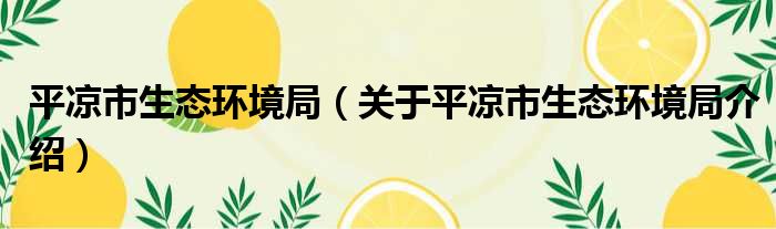 平涼市生態環境局(關于平涼市生態環境局介紹)