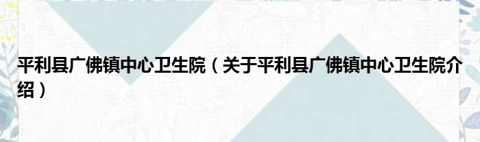 平利縣廣佛鎮中心衛生院(關于平利縣廣佛鎮中心衛生院介紹)