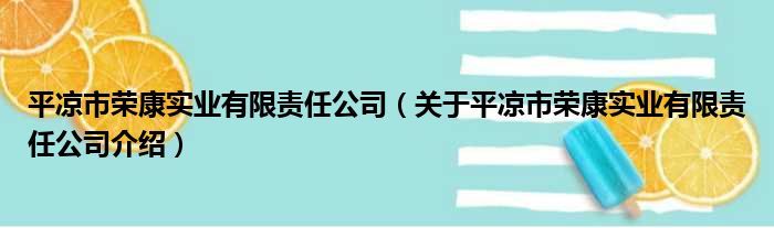 平涼市榮康實業有限責任公司(關于平涼市榮康實業有限責任公司介紹)