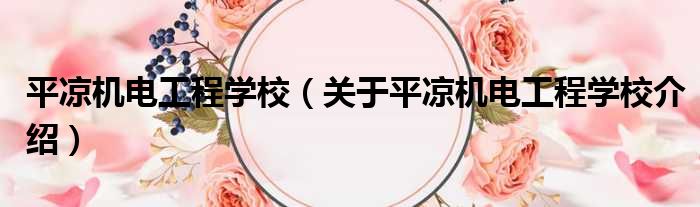 平涼機電工程學校(關于平涼機電工程學校介紹)