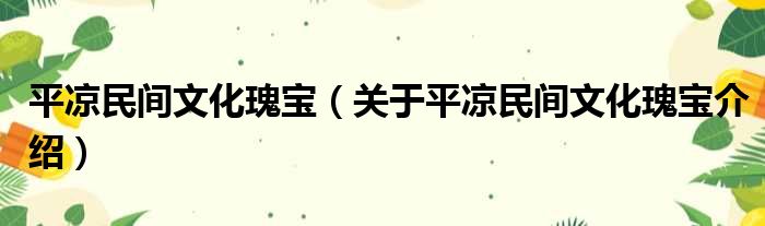 平涼民間文化瑰寶(關于平涼民間文化瑰寶介紹)