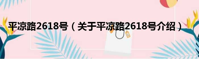 關于平涼路2618號到此分享完畢,希望能幫助到您。