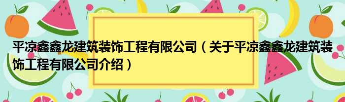 平涼鑫鑫龍建筑裝飾工程有限公司(關于平涼鑫鑫龍建筑裝飾工程有限公司介紹)
