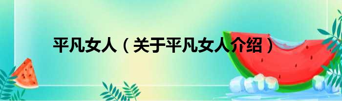 大家好,笑笑來為大家解答以上的問題。平凡女人,關于平凡女人介紹這個很多人還不知道,現在讓我們一起來看看吧!