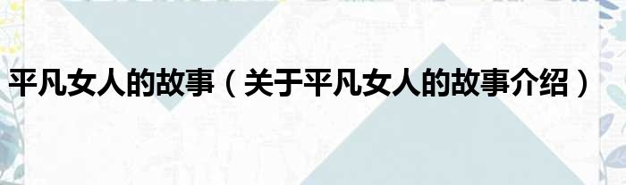 關于平凡女人的故事到此分享完畢,希望能幫助到您。