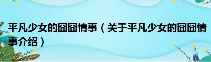 平凡少女的囧囧情事(關于平凡少女的囧囧情事介紹)