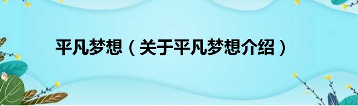 大家好,笑笑來為大家解答以上的問題。平凡夢想,關于平凡夢想介紹這個很多人還不知道,現在讓我們一起來看看吧!