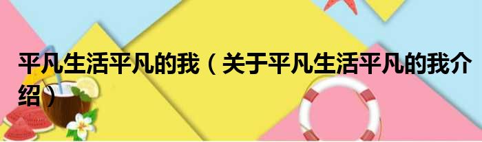 平凡生活平凡的我(關于平凡生活平凡的我介紹)