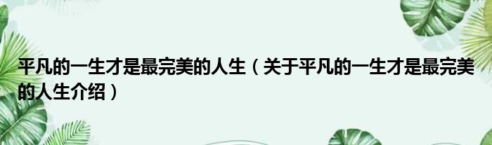 平凡的一生才是最完美的人生(關于平凡的一生才是最完美的人生介紹)