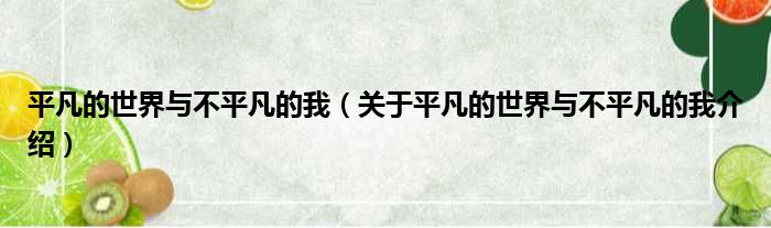 平凡的世界與不平凡的我(關于平凡的世界與不平凡的我介紹)