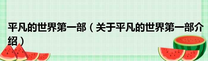 平凡的世界第一部(關于平凡的世界第一部介紹)