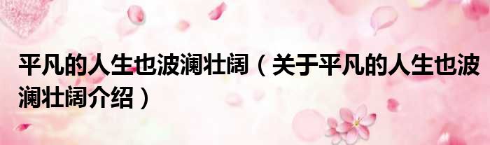 平凡的人生也波瀾壯闊(關于平凡的人生也波瀾壯闊介紹)