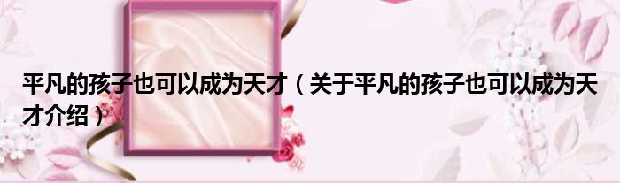 導讀 大家好,笑笑來為大家解答以上的問題。平凡的孩子也可以成為天才,關于平凡的孩子也可以成為天才介紹這個很多人還不知道,現在讓我們一起來看