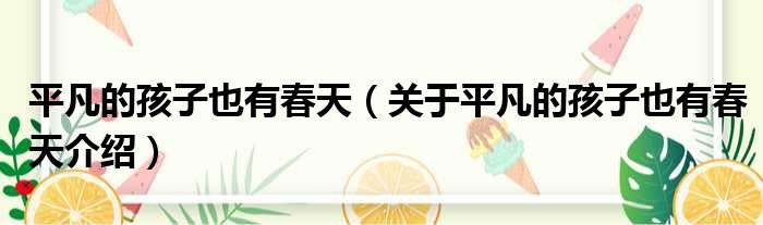 平凡的孩子也有春天(關于平凡的孩子也有春天介紹)