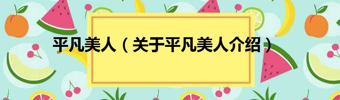 關于平凡美人到此分享完畢,希望能幫助到您。